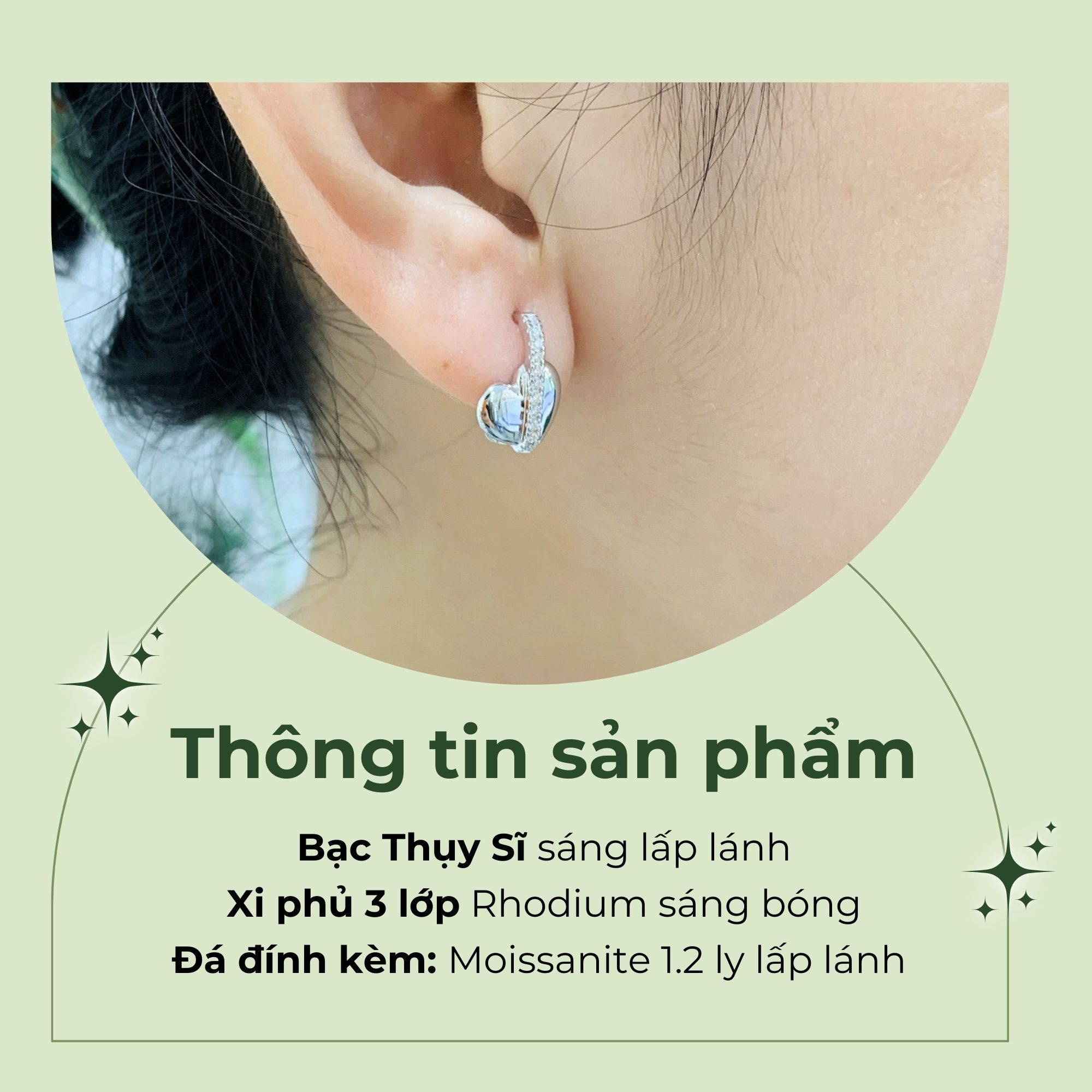 - Bông tai bạc được bảo hành đánh bóng trong suốt thời gian sử dụng