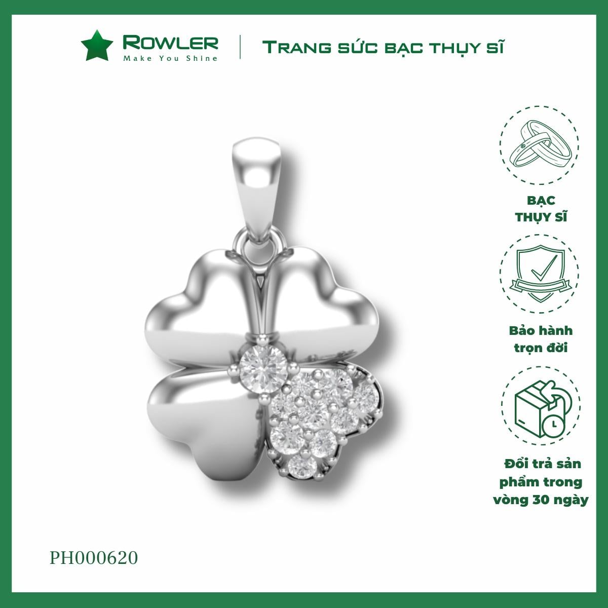 - Mặt dây chuyền bạc được bảo hành, làm sạch, đánh bóng, xi kim trong suốt thời gian sử dụng.